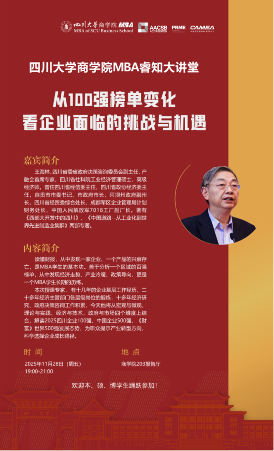 四川大学商学院MBA睿知大讲堂——从100强榜单变化看企业面临的挑战与机遇