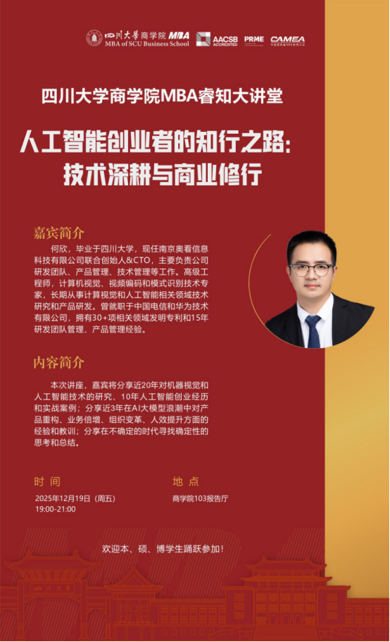 四川大学商学院MBA睿知大讲堂——人工智能创业者的知行之路:技术深耕与商业修行