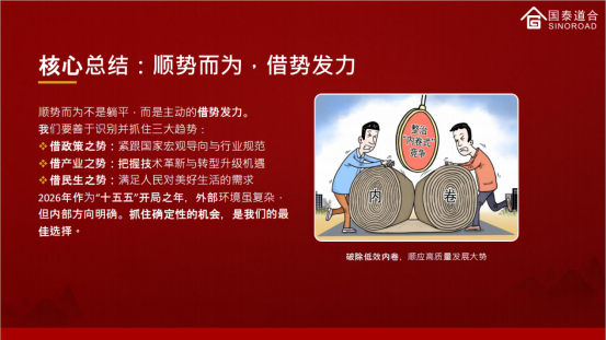 实施适度宽松的货币政策,就是让钱“活起来”,企业和个人都要学会“盘活存量”。陈总表示对企业而言,就是要满足大家“愿意花、有钱花、有空花”的需求,思考我的产品能否同时满足这三点?如果能则抢占红利,不能则需快速调整。从积极的财政政策来看,企业要跟着国家的投资方向,做长期有价值的事。陈总以消费领域、制造业升级、AI和算力新基建、新兴产业以及民生服务等为例,指出企业如何学会“借势赚钱”。两会指出继续深化改革,关注民生,陈总认为企业要吃透政策,把政策红利转化为经营优势;聚焦核心,深耕细分赛道,打造核心竞争力;练强内功,优化经营、提升效率。