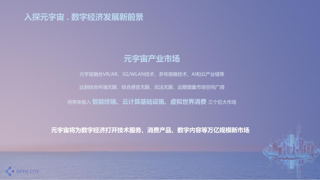对于数字城市产业元宇宙探索,马总从数字经济发展新需求、新前景、新要求、新机遇、新选题和新“元”起几方面进行了阐述。元宇宙将为数字经济带来更多行业细分新赛道、新职业、新机会。元宇宙的发展无疑将会带来智能终端、云计算基础设施和虚拟世界消费三个巨大市场,同时也为数字经济打开技术服务、消费产品和数字内容等万亿规模新市场。元宇宙将会与数字经济一道成为国家战略创新的新发展要求,马总简单介绍了国内一些主要城市政府对于元宇宙发展促进抢先布局的政策,强调成都面对元宇宙发展的机会。元宇宙“新赛场”正在开启。